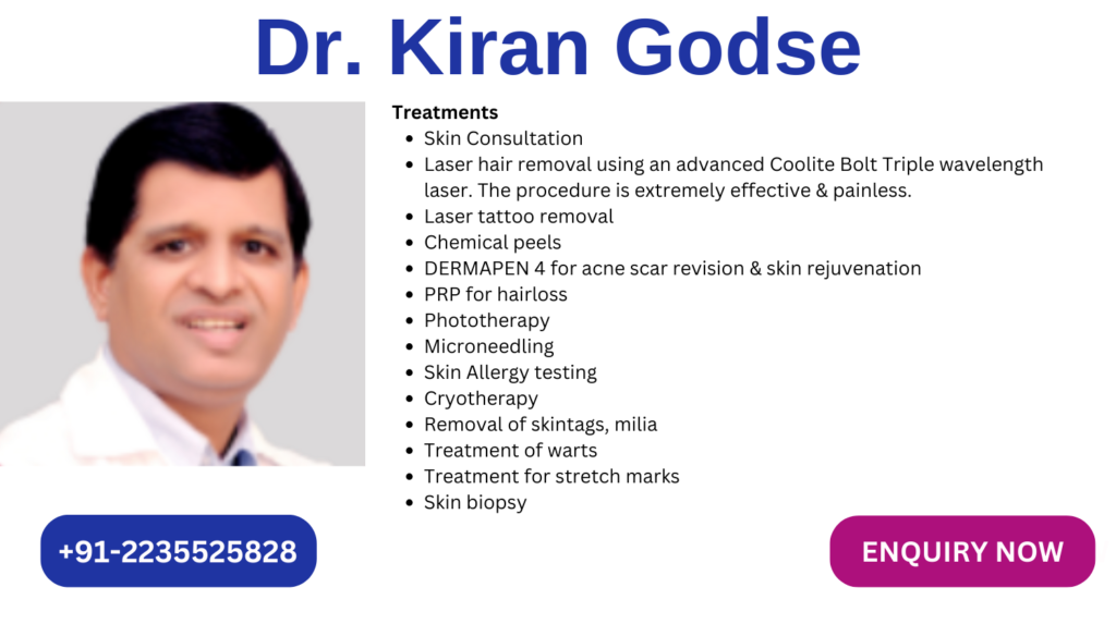 Dr.Kiran Godse completed MD,DVD from B.Y.L.Nair Hospital,Mumbai under guidance from